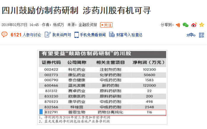 四川省政府近日出臺的《關(guān)于支持重大新藥創(chuàng)制國家科技重大專項成果轉(zhuǎn)移轉(zhuǎn)化工作的通知》(以下簡稱《通知》)提出,鼓勵仿制臨床必需、療效確切、供應(yīng)短缺的藥品,優(yōu)先仿制重大傳染病防治和罕見病治療所需藥品、處置突發(fā)公共衛(wèi)生事件所需藥品、兒童使用藥品以及專利到期前一年尚沒有提出注冊申請的藥品。鼓勵將仿制藥品目錄內(nèi)臨床急需的化學(xué)藥品和生物藥品關(guān)鍵共性技術(shù)研究及產(chǎn)品研發(fā)列入相關(guān)科技規(guī)劃和研發(fā)計劃,支持產(chǎn)學(xué)研單位申報國家相關(guān)科技計劃。對仿制藥企業(yè)符合西部大開發(fā)或高新技術(shù)企業(yè)優(yōu)惠政策的,減按15%的稅率征收企業(yè)所得稅。做好與藥品采購、醫(yī)保支付等改革政策的銜接,促進(jìn)仿制藥企業(yè)不斷增強(qiáng)科技創(chuàng)新能力,推動轉(zhuǎn)型升級?!督鹑谕顿Y報》記者梳理后發(fā)現(xiàn),目前川內(nèi)涉藥企業(yè)中包括了部分A股上市公司和新三板掛牌公司,隨著上述政策落地實施,涉藥川股有機(jī)可尋。