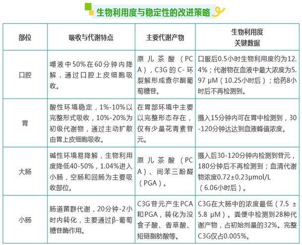 C3G的臨床應(yīng)用潛力受到其理化性質(zhì)的限制,主要是低穩(wěn)定性和低生物利用度。近期的研究重點(diǎn)之一是開發(fā)新策略以克服這些挑戰(zhàn)。