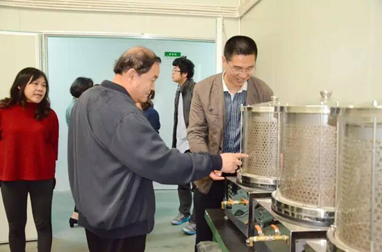 ▲四川省中醫(yī)藥科學(xué)院中藥研究所徐超群所長、中國科學(xué)院成都生物研究所丁立生研究員、王鋒鵬教授參觀固體制劑中心