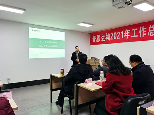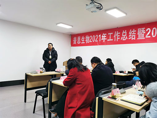 2022年1月14日,普思生物在二期三樓多功能會議室召開了2021年度工作總結(jié)會議。出席會議的有:董事長兼總經(jīng)理劉丁先生、財務(wù)總監(jiān)劉君女士、副總經(jīng)理鐘鈺女士、副總經(jīng)理朱永紅先生、部門總監(jiān)肖斌先生、總經(jīng)理助理張玉梅女士以及公司各部門管理人員共計20余人。本次會議主要是圍繞2021年的工作進(jìn)行總結(jié),同時對2022全年的工作進(jìn)行部署。