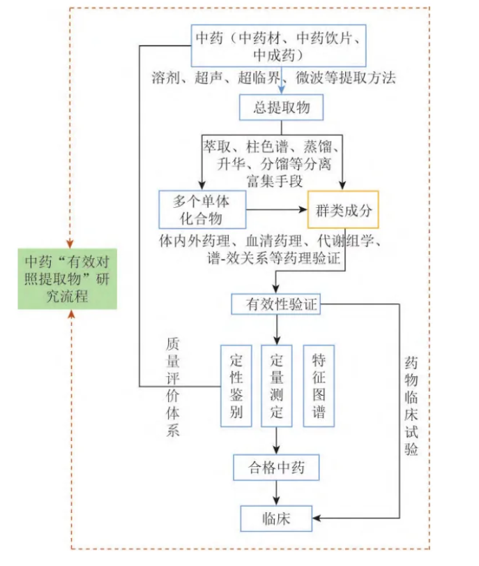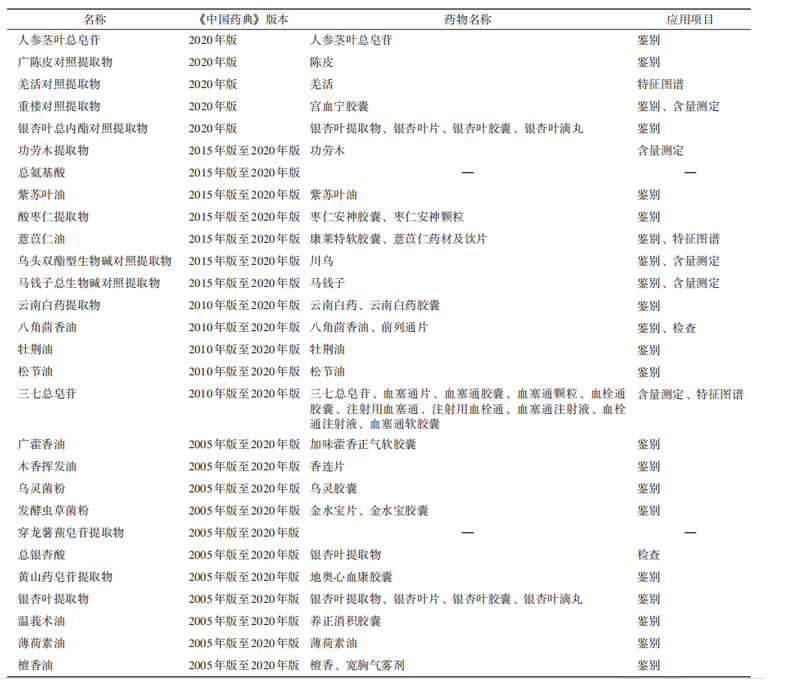 《中國藥典》2020年版將對(duì)照提取物定義為經(jīng)特定提取工藝制備的含有多種主要有效成分或指標(biāo)性成分,用于中藥材 (含飲片)、提取物、中成藥等鑒別或含量測(cè)定的國家藥品標(biāo)準(zhǔn)物質(zhì),豐富了對(duì)照提取物的內(nèi)涵,增強(qiáng)對(duì)照提取物應(yīng)用于中藥質(zhì)量標(biāo)準(zhǔn)的科學(xué)性。