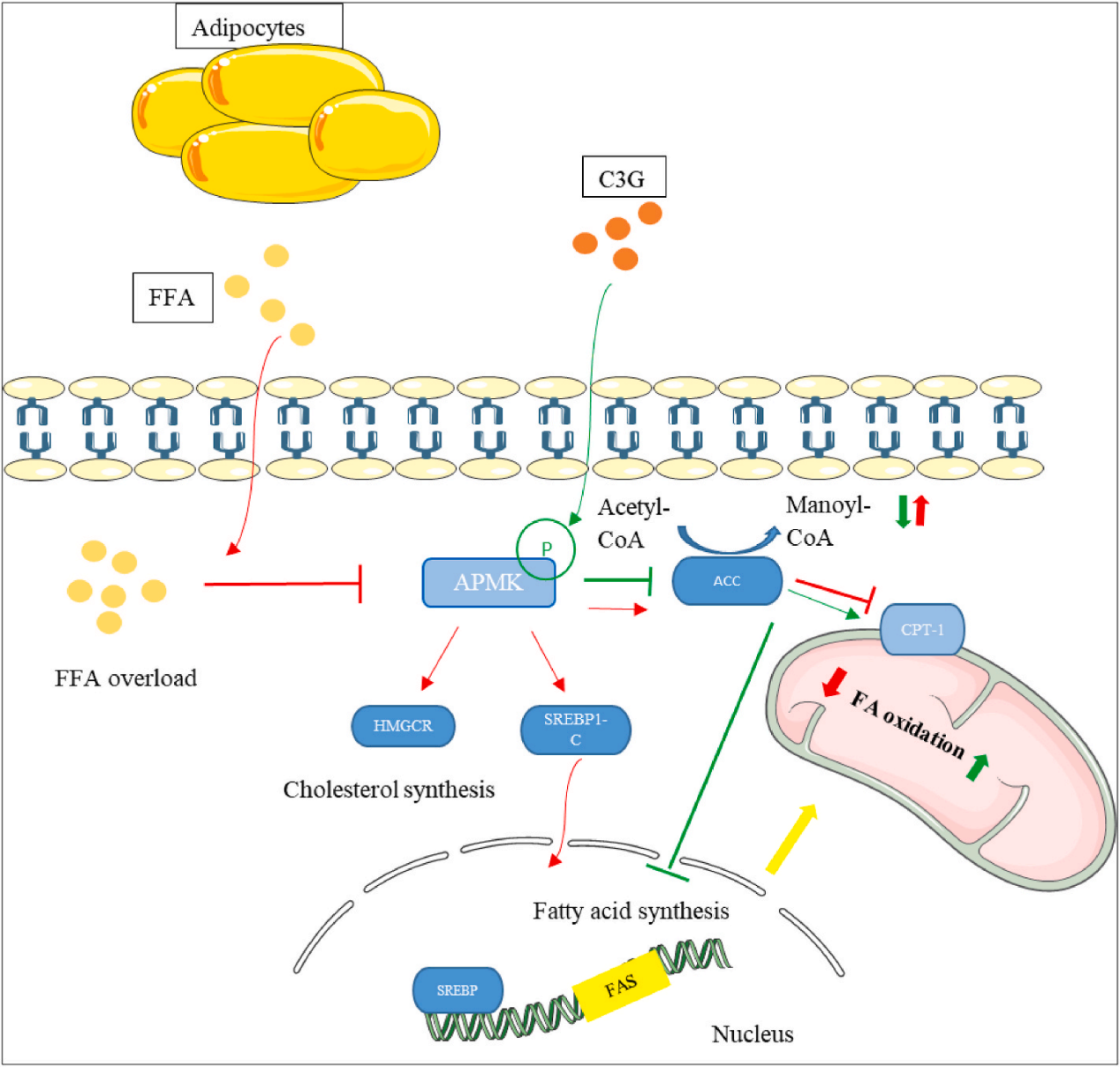 圖4 矢車菊素-3-O-葡萄糖苷(C3G)調(diào)控脂質(zhì)代謝示意圖[9]